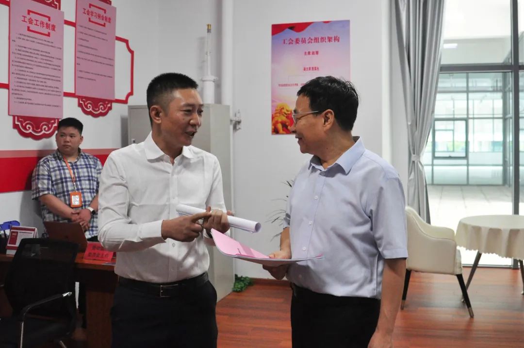 劉強(qiáng)指出,企業(yè)工會(huì)是黨聯(lián)系工人群眾的橋梁和紐帶,也是工會(huì)會(huì)員和職工利益的代表。我們黨歷來(lái)對(duì)工會(huì)工作都高度重視和大力支持,希望你們工會(huì)平時(shí)要多傾聽(tīng)員工心聲,多組織開(kāi)展員工活動(dòng),關(guān)注員工思想生活狀態(tài)。要維護(hù)好職工合法權(quán)益、竭誠(chéng)服務(wù)好職工群眾,做好新時(shí)代工會(huì)干部應(yīng)有的責(zé)任擔(dān)當(dāng)。要堅(jiān)持“黨建帶工建”思想引領(lǐng),繼續(xù)加大工作力度,不斷探索新時(shí)代民營(yíng)企業(yè)做好工會(huì)工作的新方法、新模式,為激發(fā)職工群眾的工作熱情和推動(dòng)園區(qū)經(jīng)濟(jì)高質(zhì)量發(fā)展作出更多貢獻(xiàn)。