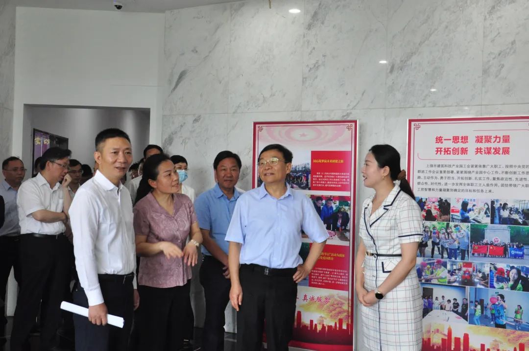 2022年7月5日上午,江西省人大常委會(huì)黨組副書記、副主任,省總工會(huì)主席劉強(qiáng)一行,在省總工會(huì)黨組書記、常務(wù)副主席鄒紹輝、上饒市委副書記郭素芳、上饒市人大常委會(huì)副主任,市總工會(huì)黨組書記、主席吳曙、上饒高鐵經(jīng)濟(jì)試驗(yàn)區(qū)黨工委書記魏文攻等陪同下,深入上饒市建筑科技產(chǎn)業(yè)園(建業(yè)硅谷)調(diào)研。