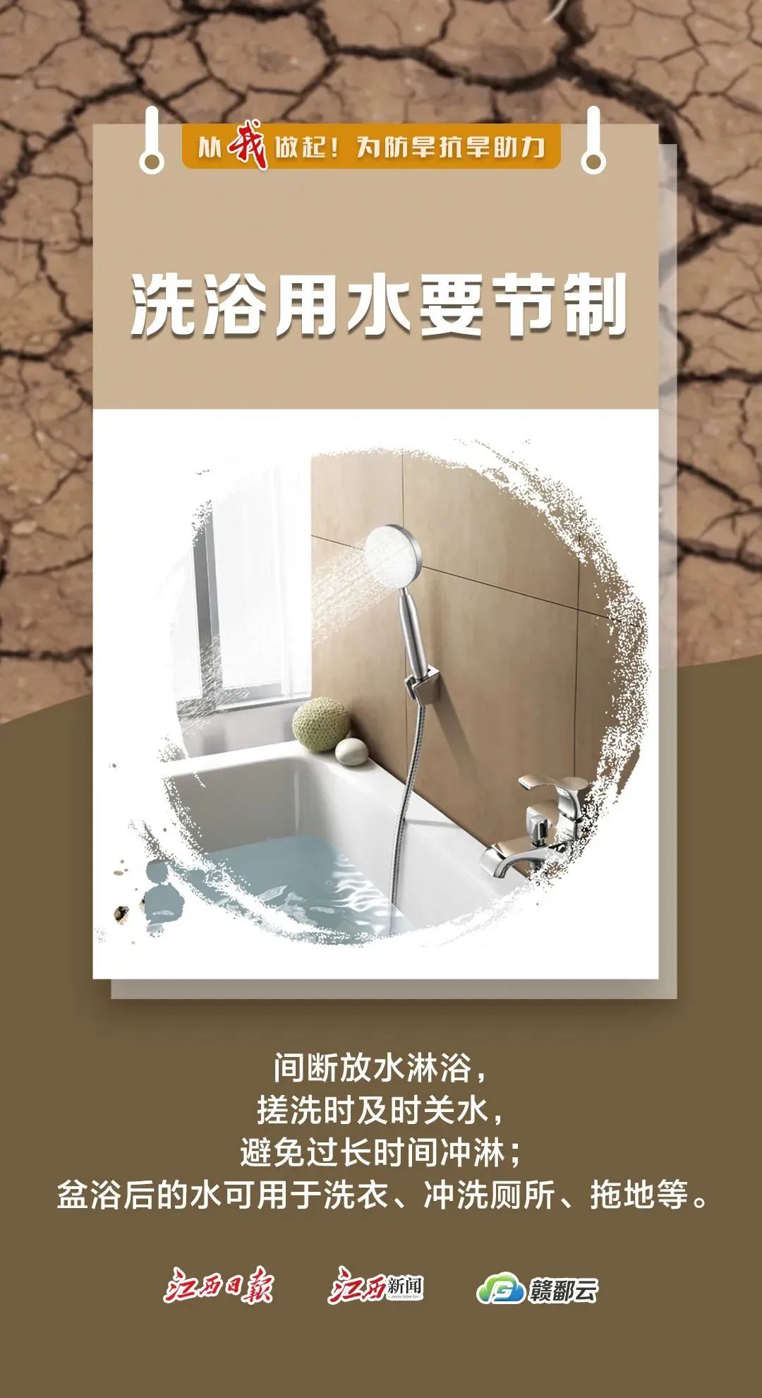 倡議您向身邊的人宣傳水電資源緊缺現(xiàn)狀,宣傳節(jié)水、節(jié)電理念,傳播節(jié)水、節(jié)電經(jīng)驗知識;號召更多人加入到節(jié)約用水用電的行動上來,共同營造人人關(guān)心、人人身體力行的良好氛圍。