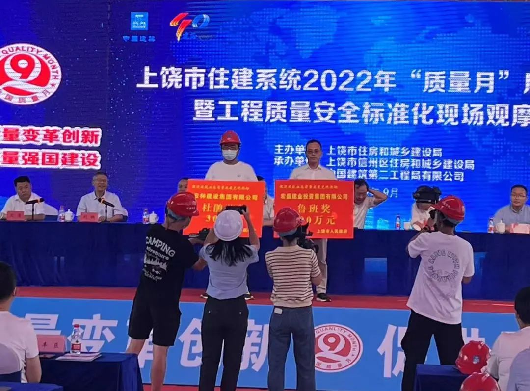 活動現(xiàn)場,副市長李茂榮與市住建局局長陳鋒為2021年度獲得“魯班獎”和“杜鵑花獎”的企業(yè)頒獎,宏盛建業(yè)集團(tuán)榮獲上饒市首個(gè)“魯班獎”并獲得扶持獎金200萬元。
