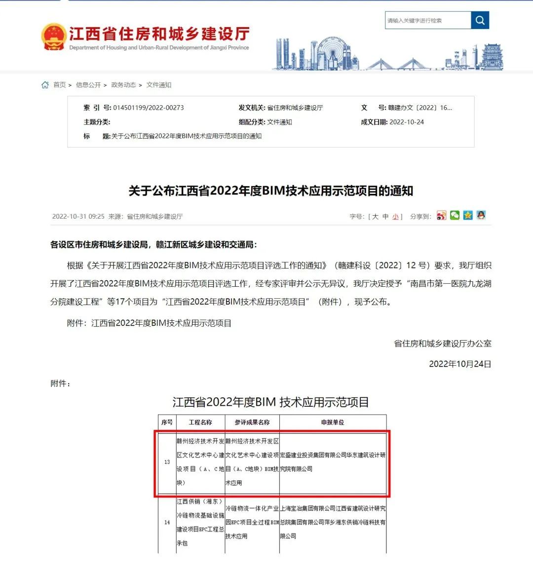 宏盛建業(yè)投資集團(tuán)有限公司贛州經(jīng)濟(jì)技術(shù)開(kāi)發(fā)區(qū)文化藝術(shù)中心建設(shè)項(xiàng)目(A、C地塊)榮獲江西省2022年度BIM技術(shù)應(yīng)用示范項(xiàng)目。