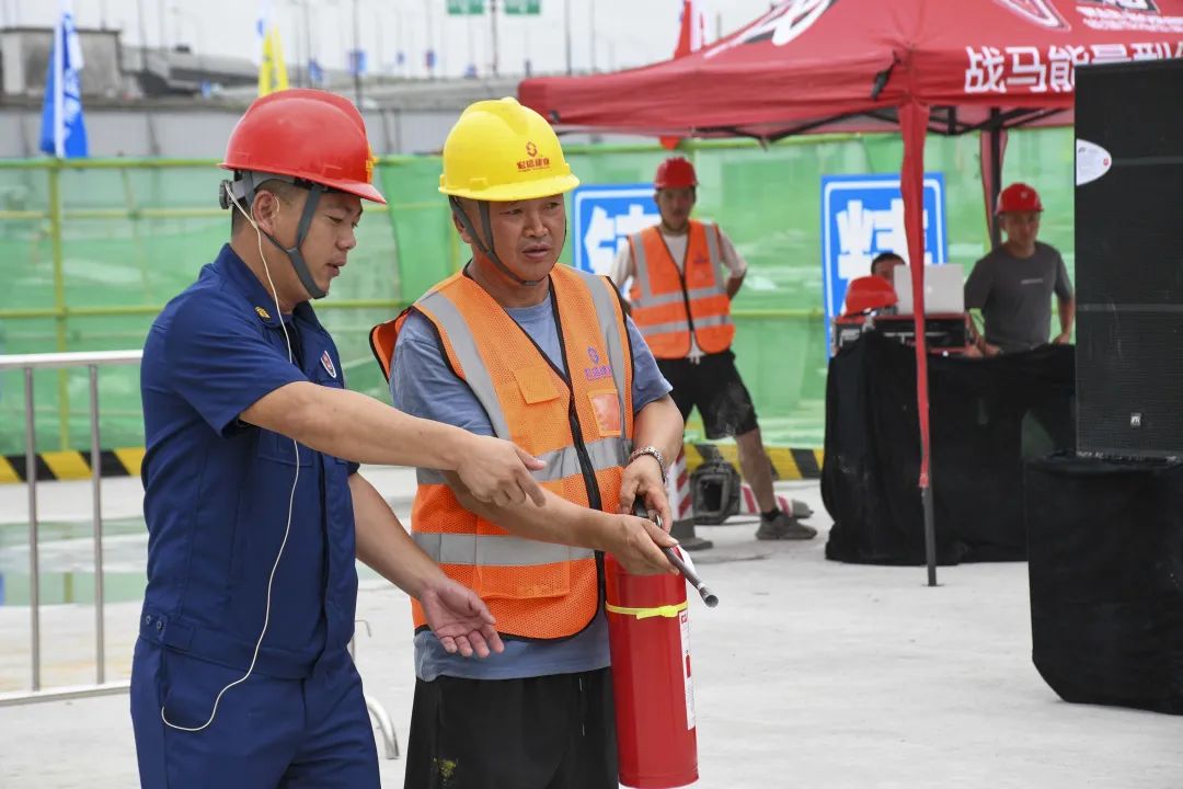 演練共分三個環(huán)節(jié),分別是消防滅火器使用培訓(xùn)、常用醫(yī)療應(yīng)急處理培訓(xùn)和高溫中暑應(yīng)急演練。