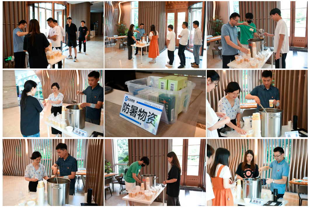 此外,集團(tuán)大樓一樓前臺(tái)常設(shè)防暑物資供應(yīng)點(diǎn),高溫天熱心的黨員同事還擔(dān)任“清涼大使”,為大家提供清爽宜人的消暑湯。為踐行低碳環(huán)保的理念,不少同事自帶水杯,以減少一次性用品的消耗。
