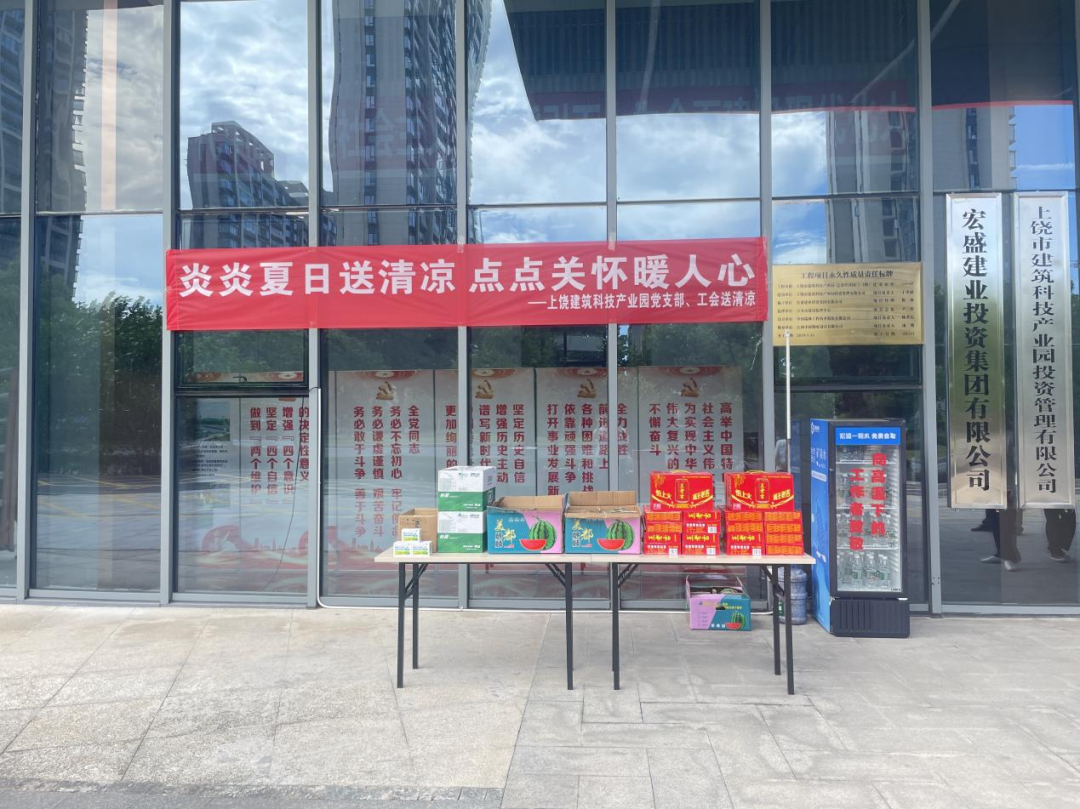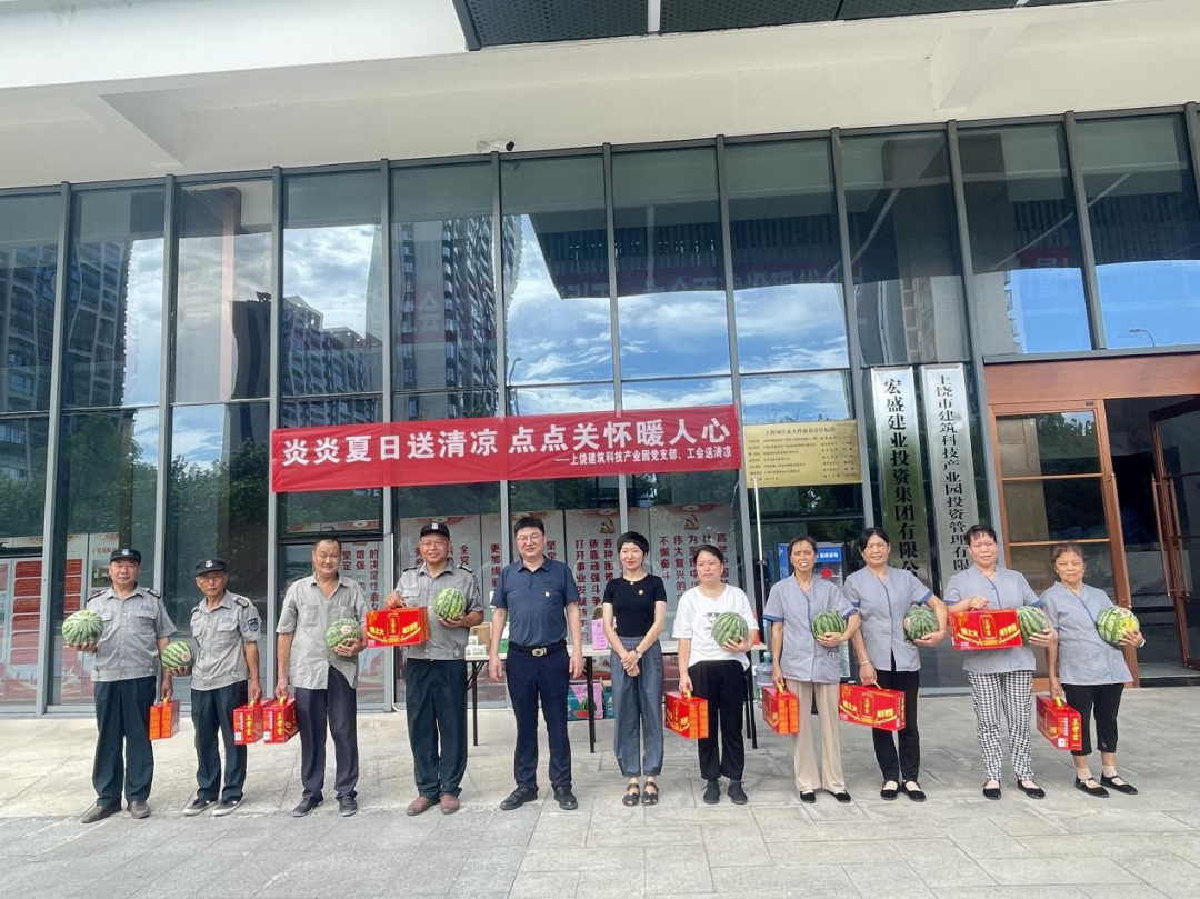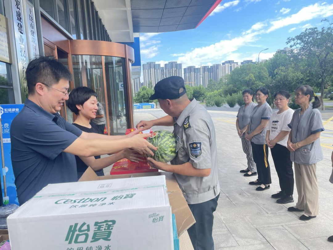 夏日炎炎,保安保潔等工作人員是產業(yè)園安全和環(huán)境的守護者。7月26日,上饒市建筑科技產業(yè)園黨支部精心策劃,為這些一線戰(zhàn)高溫的工作人員遞溫暖、送清涼。