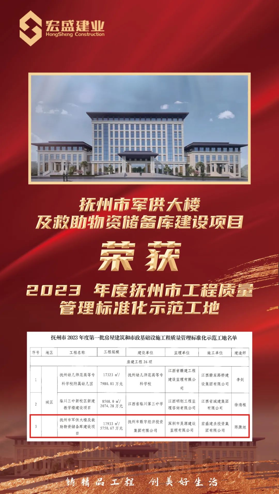 喜訊 | 撫州市軍供大樓項目榮獲2023年度撫州市工程質量管理標準化示范工地