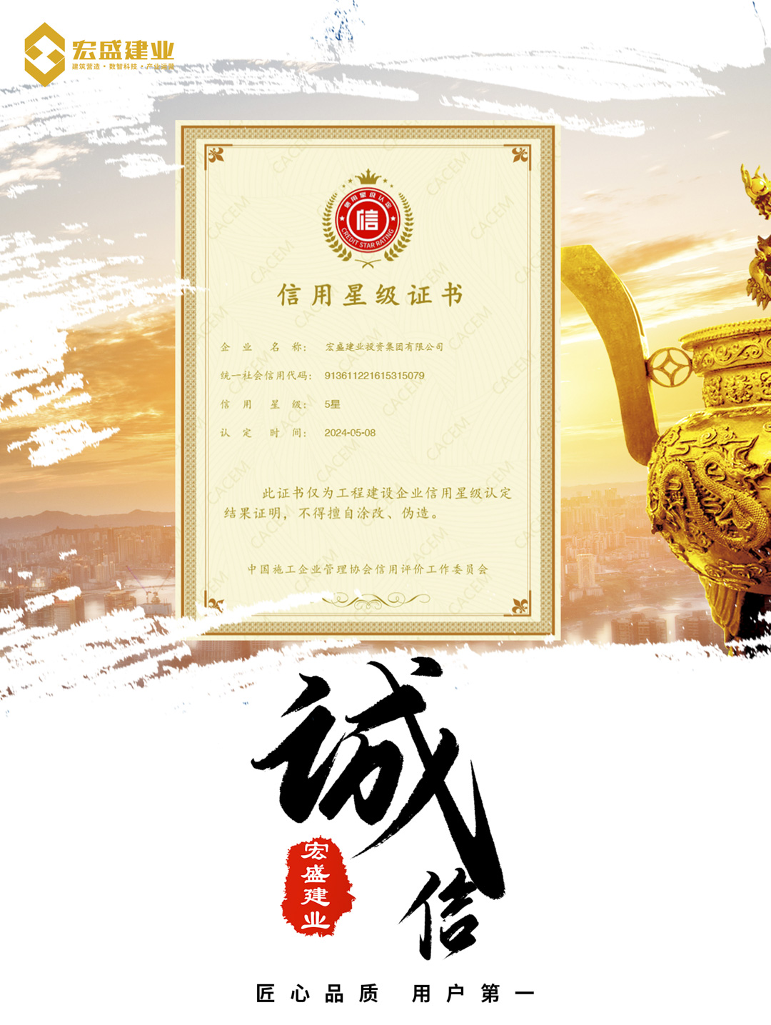 喜訊丨宏盛建業(yè)榮獲工程建設(shè)企業(yè)信用星級5星認(rèn)定