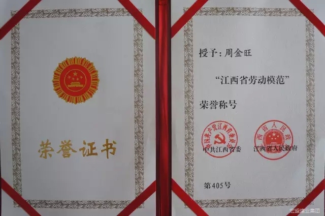 熱烈祝賀集團職工周金旺同志榮獲“江西省勞動模范”稱號
