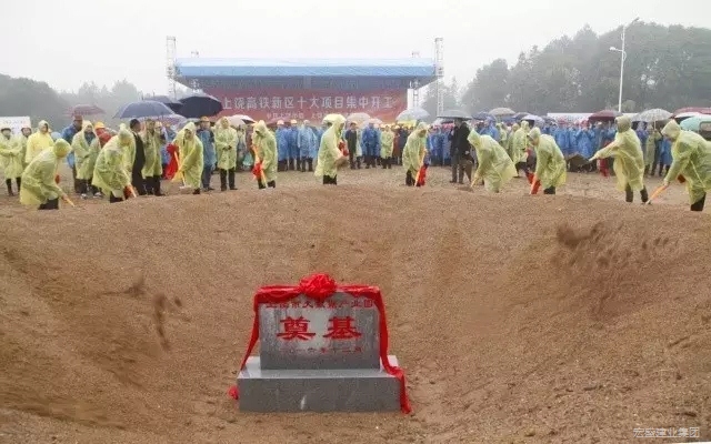 隨后,市領(lǐng)導(dǎo)和客商代表冒雨為高鐵項(xiàng)目揮鍬奠基