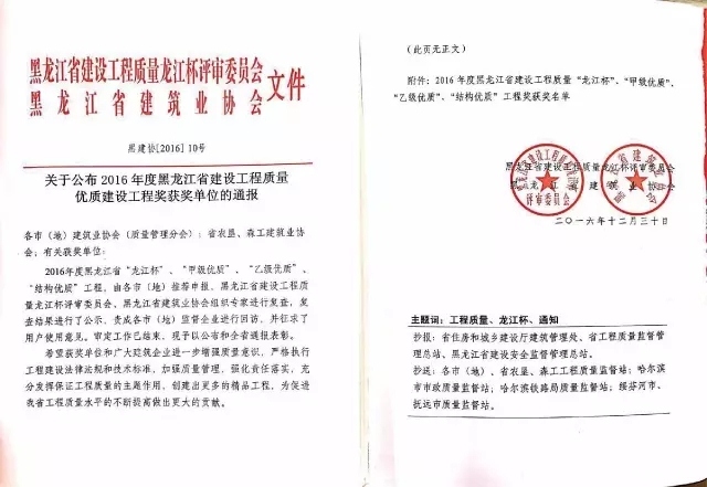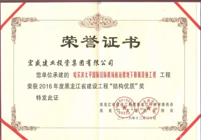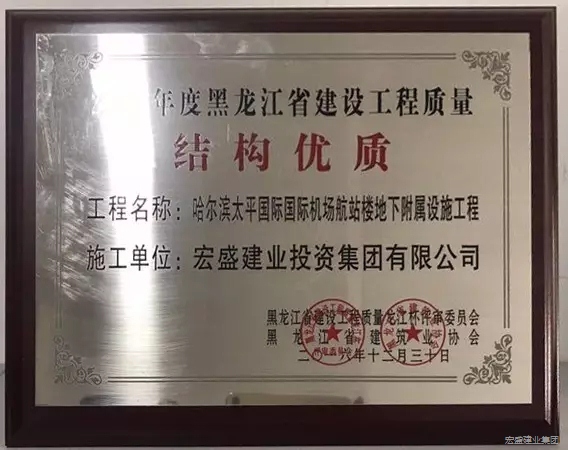 近日,由黑龍江省機場管理集團有限公司投資、宏盛建業(yè)投資集團承建的哈爾濱太平國際機場航站樓地下附屬設施工程項目在省政府2016年績效考評中獲評2016年度黑龍江省建設工程“結構優(yōu)質(zhì)”獎榮譽稱號。