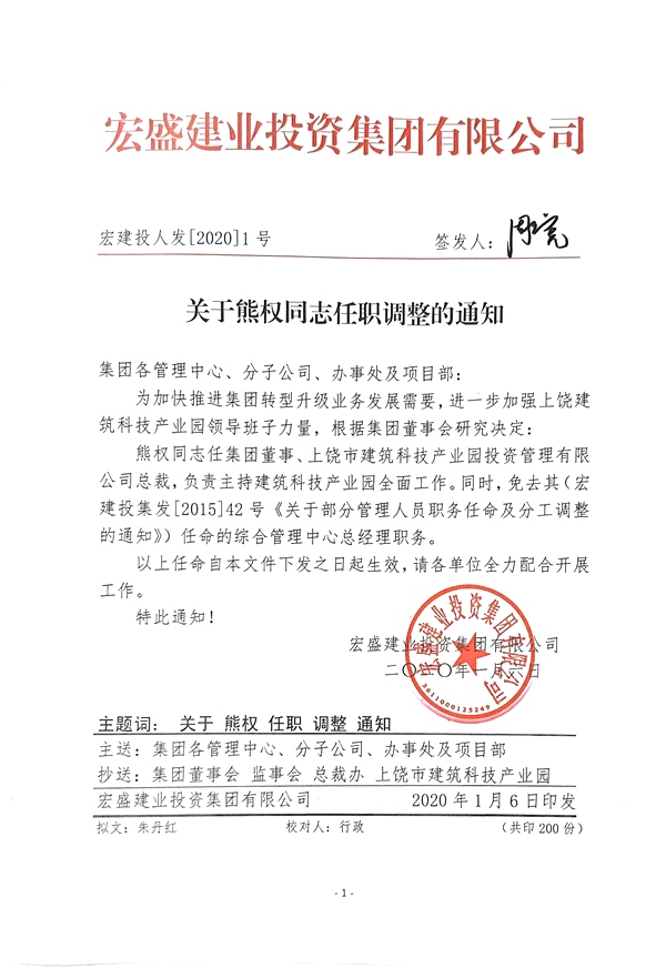 關(guān)于熊權(quán)同志任職調(diào)整的通知