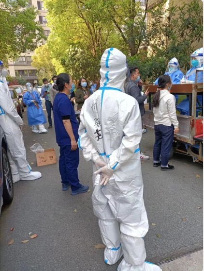 宏盛建業(yè)集團綜合發(fā)展中心何驍堯也積極響應閔行區(qū)關于投入社區(qū)防疫工作的號召,加入社區(qū)志愿者服務工作。穿上防護服,戴上防護面具。他不畏艱難,奮戰(zhàn)在社區(qū)核酸采樣點。維持著隊伍秩序,幫助居民們登記,更幫助老年人及行動不便的居民排隊。每一位檢測完畢的居民都需要有序進行登記并從另一側離開以有效免交叉。來往的居民很多,在檢測點也需要頻繁對來往的人員進行疏導,雖說工作不難,但仍有很多的居民對需要繞場回家表示不理解,又需要耐心反復進行規(guī)勸。作為一個初級“大白”的他在勸導一些態(tài)度較為“強硬”的居民的同時,也在反復克制著自己的不良情緒以避免不必要的矛盾升級,始終保持耐心予以引導。