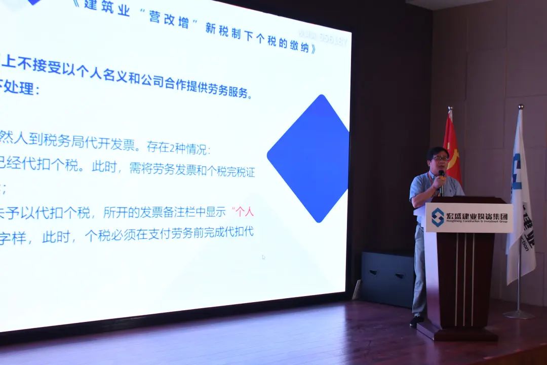 2022年8月8日,宏盛學堂財稅專項培訓第一期《建筑業(yè)“營改增”新稅制下個稅的繳納》于總部大樓八樓召開。