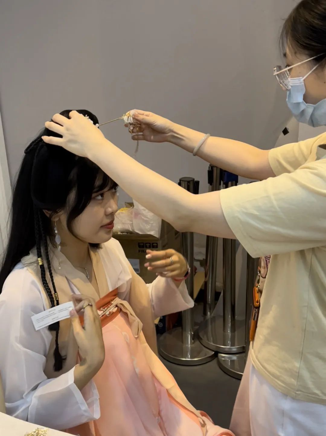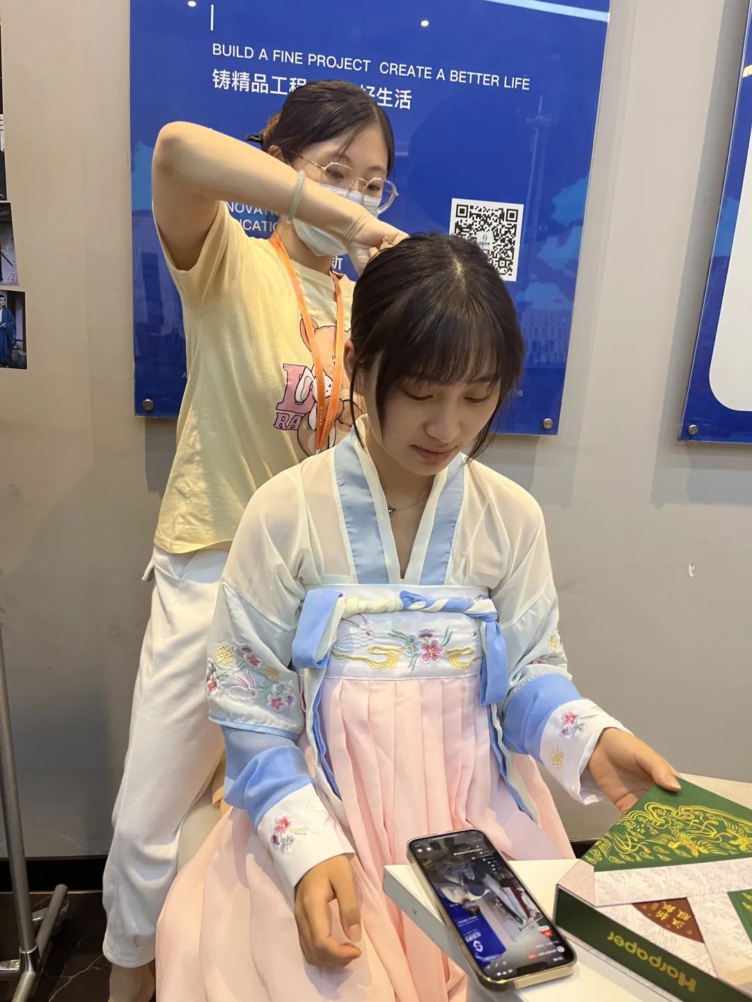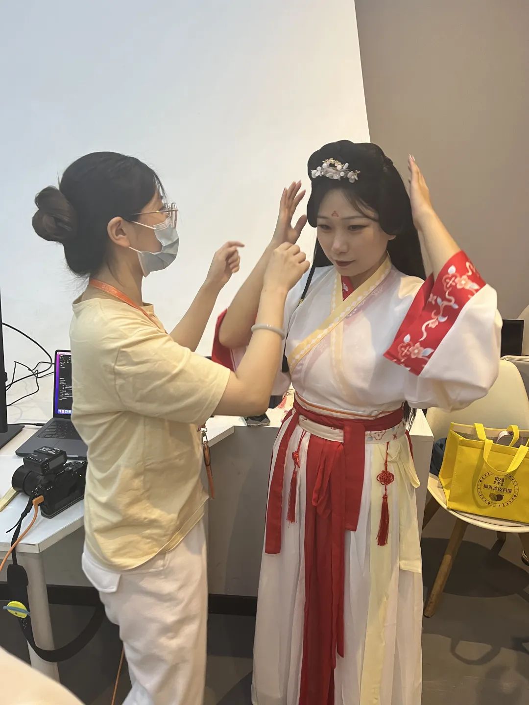 化妝師為已經(jīng)穿戴好漢服的同事整理發(fā)型、裝扮頭飾,攝影師們不斷指導(dǎo)拍攝動(dòng)作、調(diào)整姿態(tài),一張張屬于宏盛家人們自己的漢服照完美呈現(xiàn)出來。大家都說:“拍的真好,不但美,連古代的那種意境也都體現(xiàn)地淋漓盡致,非常期待成品!”