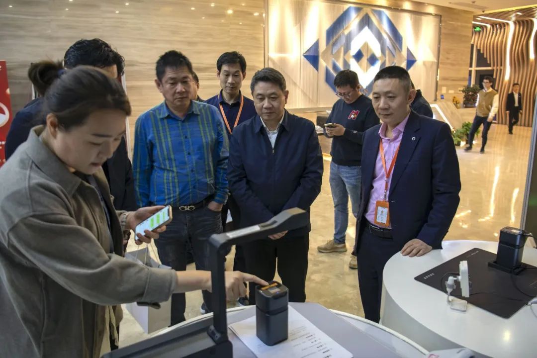 來訪領(lǐng)導(dǎo)一行首先參觀了章管家印章智慧管理體驗(yàn)中心,深入了解了建業(yè)科技在印章智慧管控的發(fā)展歷程、運(yùn)營模式、技術(shù)成果以及未來發(fā)展藍(lán)圖等方面的基本情況。建業(yè)科技圍繞企業(yè)風(fēng)險(xiǎn)智慧管控、建筑智慧工地等領(lǐng)域的眾多數(shù)字場景,研發(fā)出智慧產(chǎn)品應(yīng)用及解決方案,推動(dòng)企業(yè)印章管理轉(zhuǎn)型升級。