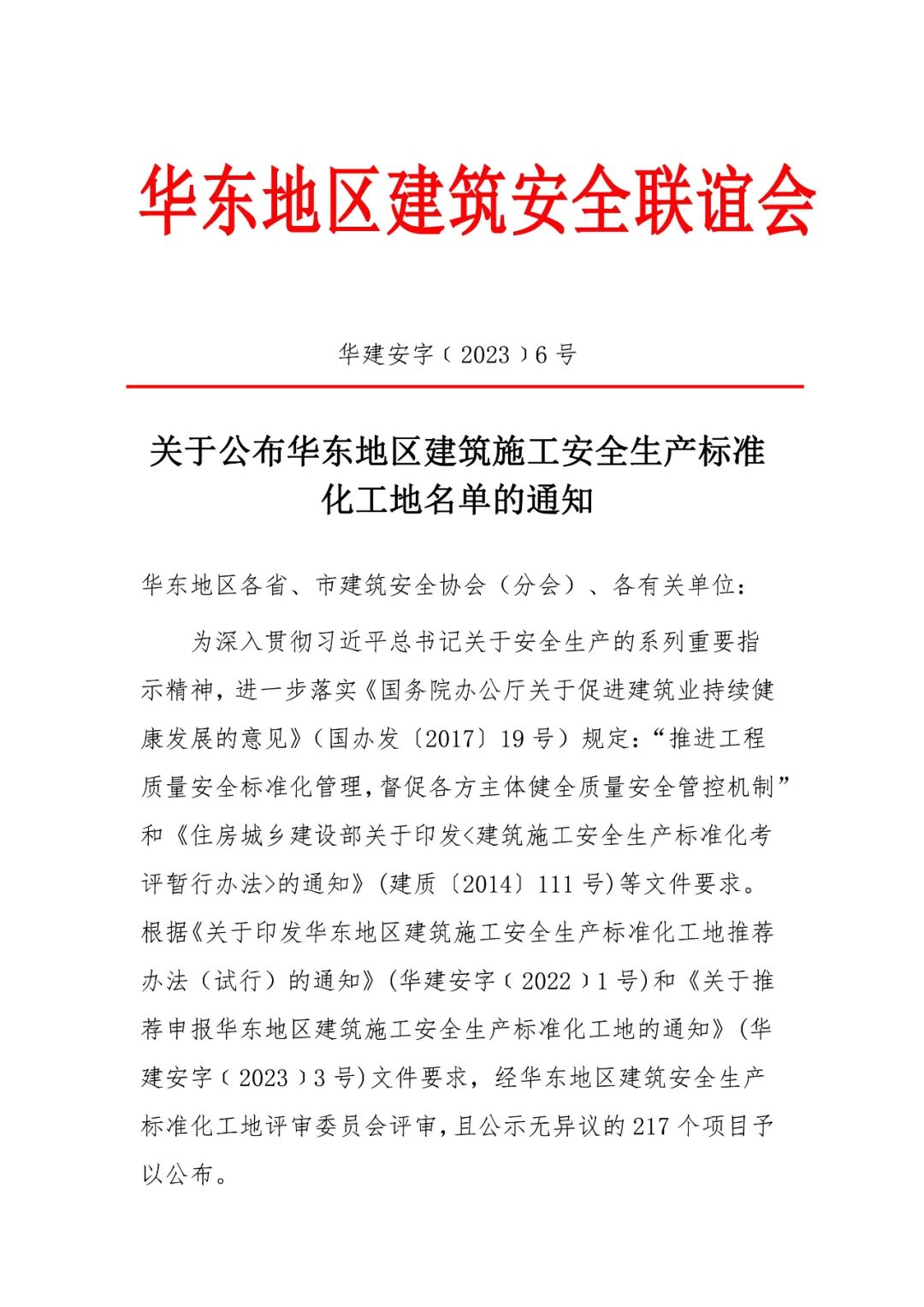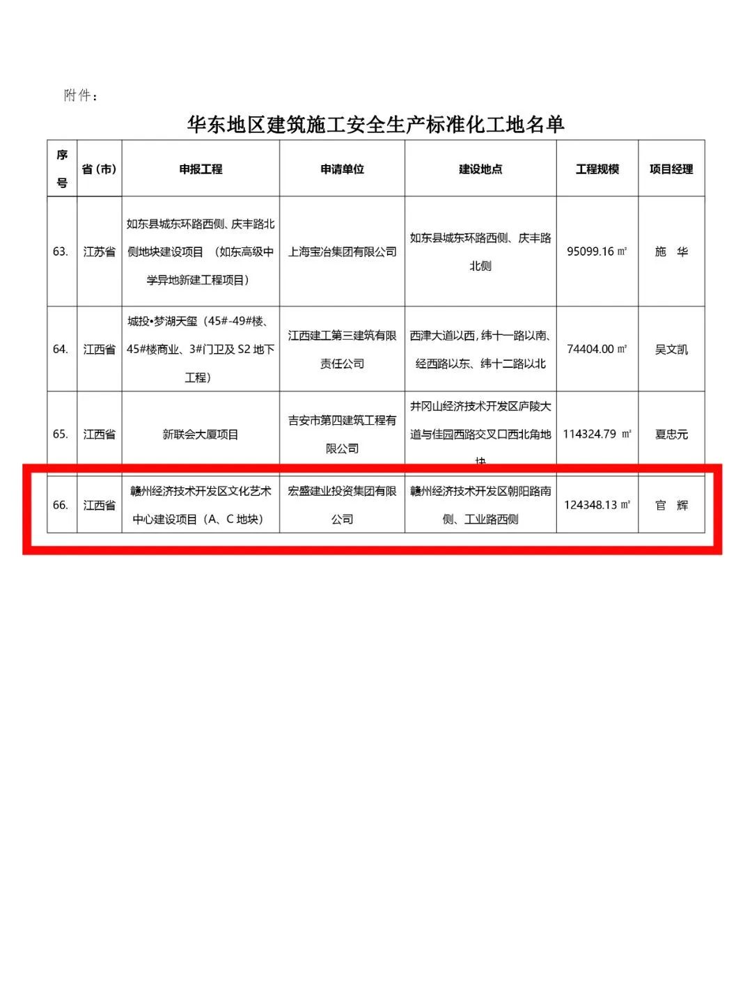 近日,山東省建筑安全與設(shè)備管理協(xié)會(huì)公示了關(guān)于2023 年度華東地區(qū)建筑施工安全生產(chǎn)標(biāo)準(zhǔn)化工地的名單,由我司宏盛建業(yè)投資集團(tuán)承建的“贛州經(jīng)濟(jì)技術(shù)開(kāi)發(fā)區(qū)文化藝術(shù)中心建設(shè)項(xiàng)目(A、C)地塊”被評(píng)為“2023年度華東地區(qū)建筑施工安全生產(chǎn)標(biāo)準(zhǔn)化工地”。