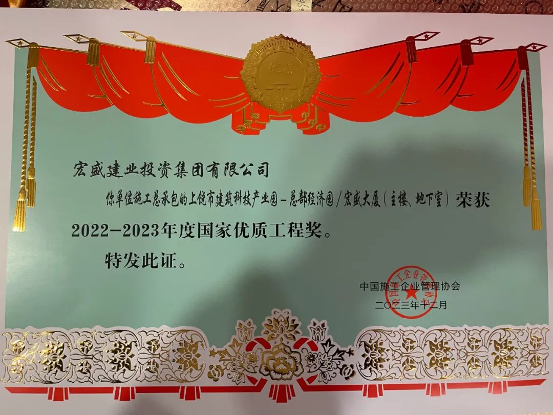 實(shí)“質(zhì)”名歸丨宏盛建業(yè)斬獲國家優(yōu)質(zhì)工程獎