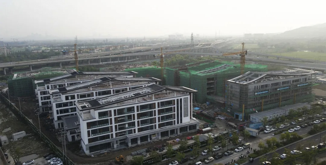 杜甫中學位于良渚新城,總用地面積 61017 平方米,總建筑面積 73356.00m2,其中 8號樓、9號樓大跨度型鋼梁施工難度較大,8號樓體育館型鋼梁單跨 41.4 米,梁高 2.1 米、寬 1.0 米;9號樓報告廳型鋼梁單跨 31.4 米,梁高 2.0 米、寬 0.8 米。面對如此跨度的型鋼梁,又逢江南多雨季節(jié),完成如此“龐然大物”吊裝工作并控制在毫米級誤差,對項目部施工技術管理工作是一項巨大的挑戰(zhàn)。