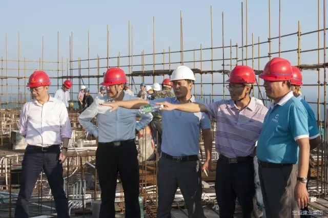 2016年9月12日,廣東省優(yōu)質(zhì)工程評(píng)審委員會(huì)專(zhuān)家陳臻穎、廣東省陽(yáng)江市建筑業(yè)協(xié)會(huì)秘書(shū)長(zhǎng)黃文越、廣東省陽(yáng)江市優(yōu)質(zhì)工程評(píng)審委員會(huì)專(zhuān)家林漢清以及參加“中國(guó)民營(yíng)建筑企業(yè)經(jīng)營(yíng)創(chuàng)新發(fā)展思路研討會(huì)”的公司高層領(lǐng)導(dǎo)和專(zhuān)家,蒞臨廣東省陽(yáng)江市月亮灣濱海旅游度假區(qū)翡翠灣4#、5#樓工程項(xiàng)目部實(shí)地觀摩和指導(dǎo)工作。集團(tuán)公司董事長(zhǎng)周金虎、首席高級(jí)顧問(wèn)黃如福教授全程陪同。