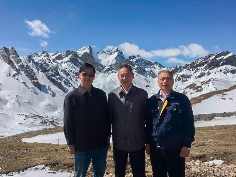 宏盛建業(yè)投資集團(tuán)有限公司工程部負(fù)責(zé)人榮十勝(右一)與江西省政協(xié)黨組副書(shū)記、副主席(原援建指揮部指揮長(zhǎng))陳俊卿同志(右二)、四川省阿壩州人大常委會(huì)副主任李洪勇(左一)在美汗公路邊合影