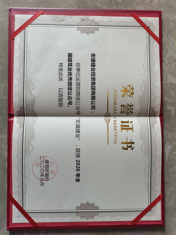 宏盛建業(yè)集團榮獲“2020年全國建筑業(yè)優(yōu)秀微信公眾號”稱號
