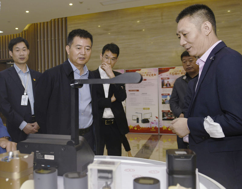 △上饒市委書(shū)記馬承祖觀看“章管家-印章智慧管理解決方案”操作演示流程