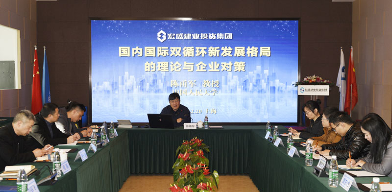 12月20日上午,著名經(jīng)濟(jì)學(xué)家、中國人大商學(xué)院陳甬軍教授蒞臨宏盛建業(yè)投資集團(tuán)上海總部,圍繞《雙循環(huán)格局理論與企業(yè)對策》的主題作交流研討。集團(tuán)副董事長周金旺、監(jiān)事長成承、董事周金富、董事何丹及中高層管理人員共同出席座談交流。