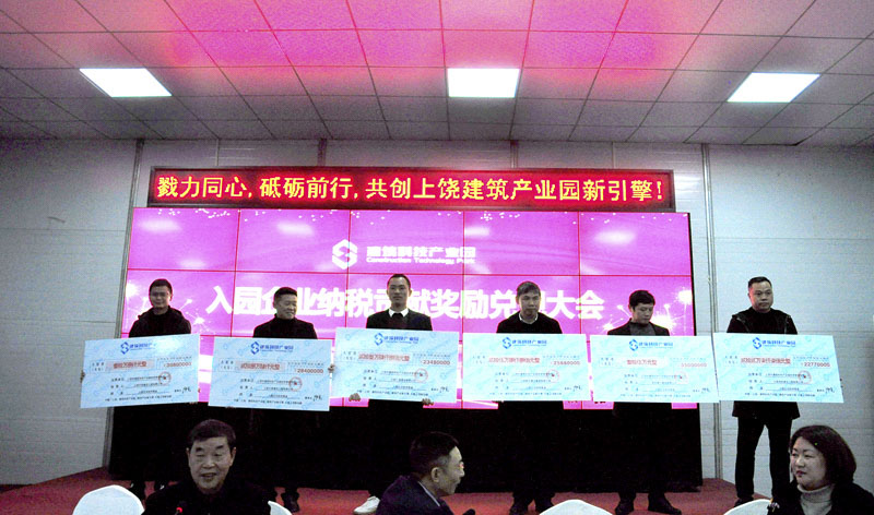 上饒市建筑科技產(chǎn)業(yè)園?【建業(yè)硅谷】隆重舉行入園企業(yè)納稅貢獻(xiàn)獎(jiǎng)勵(lì)兌現(xiàn)大會(huì),一次性向優(yōu)質(zhì)入園企業(yè)兌現(xiàn)獎(jiǎng)金1300余萬元。