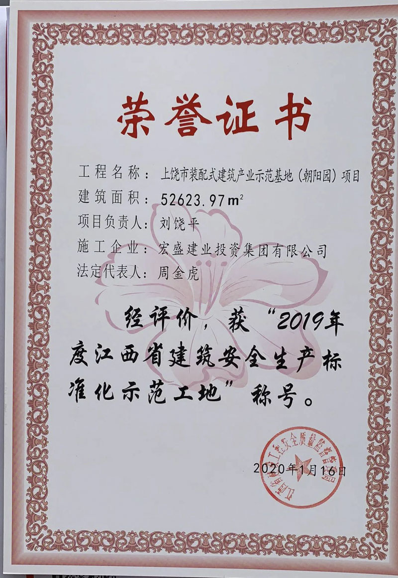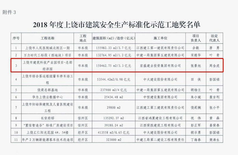 江西省住房與城鄉(xiāng)建設(shè)廳網(wǎng)站發(fā)文公示,由宏盛建業(yè)承建上饒市建筑科技產(chǎn)業(yè)園-總部經(jīng)濟(jì)園、上饒裝配式建筑產(chǎn)業(yè)示范基地(朝陽園)項(xiàng)目,獲評(píng)2019年度江西省建筑結(jié)構(gòu)示范工程和安全生產(chǎn)標(biāo)準(zhǔn)化示范工地。