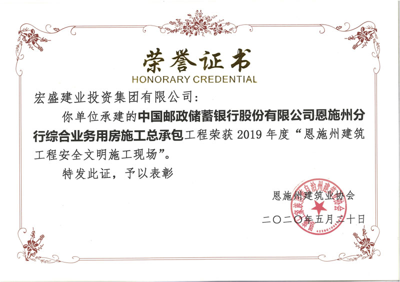 從湖北省建設(shè)工程質(zhì)量安全協(xié)會(huì)文件(鄂建質(zhì)安協(xié)〔2020〕7號(hào))文件獲悉,宏盛建業(yè)承建的中國郵政儲(chǔ)蓄銀行股份有限公司恩施州分行綜合業(yè)務(wù)用房施工總承包項(xiàng)目,獲評(píng)2019-2020年度第二批湖北省建筑工程安全文明施工現(xiàn)場(chǎng)。該項(xiàng)目累獲市優(yōu)省優(yōu),展現(xiàn)項(xiàng)目擔(dān)當(dāng)。