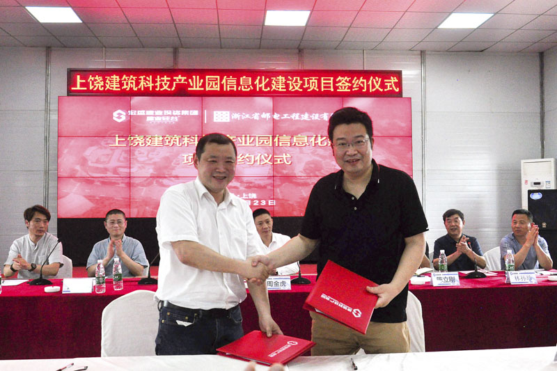上饒建筑科技產(chǎn)業(yè)園投資管理有限公司與浙江省郵電工程建設(shè)有限公司在上饒舉行“建業(yè)硅谷”智慧園區(qū)信息化系統(tǒng)建設(shè)集成項(xiàng)目合作簽約儀式
