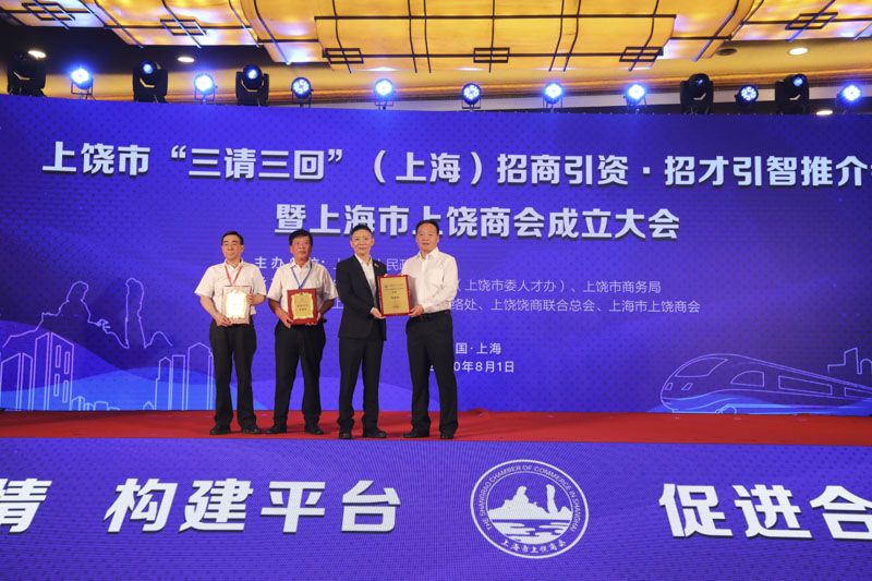 “上饒市‘三請(qǐng)三回’(上海)招商引資·招才引智推介會(huì)暨上海市上饒商會(huì)成立大會(huì)”在上海華亭賓館隆重舉行。宏盛建業(yè)投資集團(tuán)董事長周金虎當(dāng)選上海市上饒商會(huì)會(huì)長,并在推介會(huì)上與上饒市政府簽訂擬投資40億元落戶上饒經(jīng)開區(qū)的數(shù)智電子科技園項(xiàng)目。