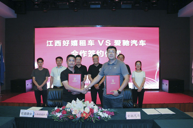 江西好嬉租車與愛馳汽車,在宏盛建業(yè)投資集團(tuán)上??偛颗e行合作簽約。好嬉租車第一期將采購100臺(tái)愛馳U5型號(hào)的新能源車作為主打車型投入運(yùn)營。