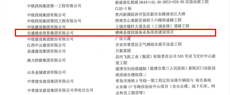 集團(tuán)承建項(xiàng)目橫峰縣便民服務(wù)業(yè)務(wù)用房項(xiàng)目獲評(píng)2018年度上饒市優(yōu)質(zhì)工程獎(jiǎng)、2018年度上饒市建筑安全生產(chǎn)標(biāo)準(zhǔn)化示范工地獎(jiǎng);上饒建筑科技產(chǎn)業(yè)園總部經(jīng)濟(jì)園項(xiàng)目,萬年縣完全中學(xué)、六〇小學(xué)、智慧校園管理中心、第三幼兒園工程規(guī)劃EPC總承包項(xiàng)目,獲評(píng)2018年度上饒市建筑安全生產(chǎn)標(biāo)準(zhǔn)化示范工地獎(jiǎng)。