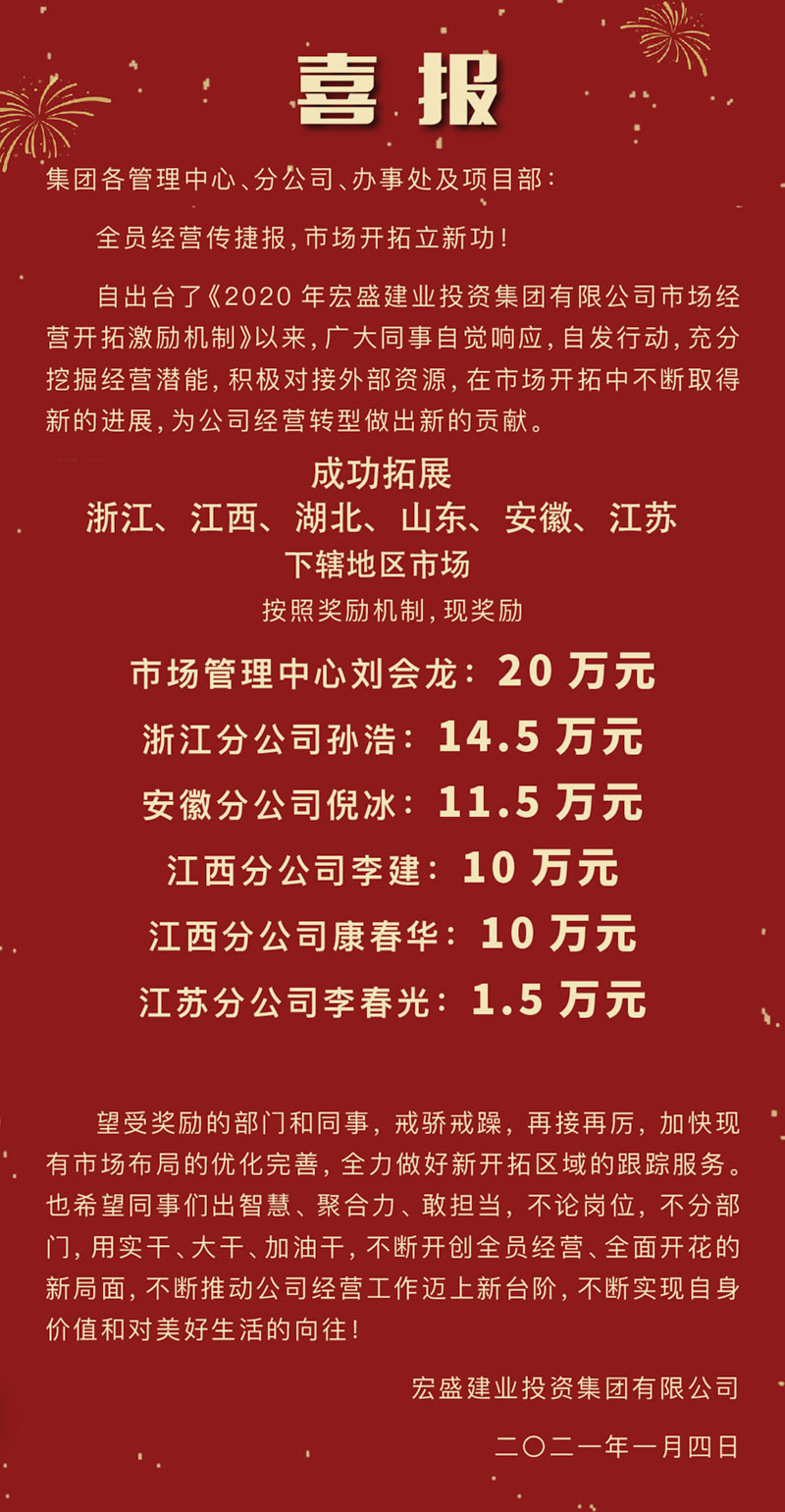 會上,集團對市場經(jīng)營階段性成果進(jìn)行表彰,現(xiàn)場為2020年度成功開拓簽約地區(qū)級市場合作的先進(jìn)集體和個人,以及成功中標(biāo)規(guī)模以上項目的分公司頒發(fā)現(xiàn)金獎勵。