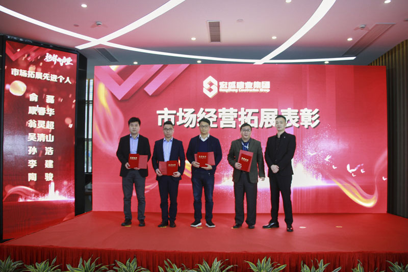 集團市場管理中心總經(jīng)理毛智超頒發(fā)市場經(jīng)營拓展獎。6位受表彰人員分別是:俞磊、康春華、李建、吳清山、陶駿、孫浩。