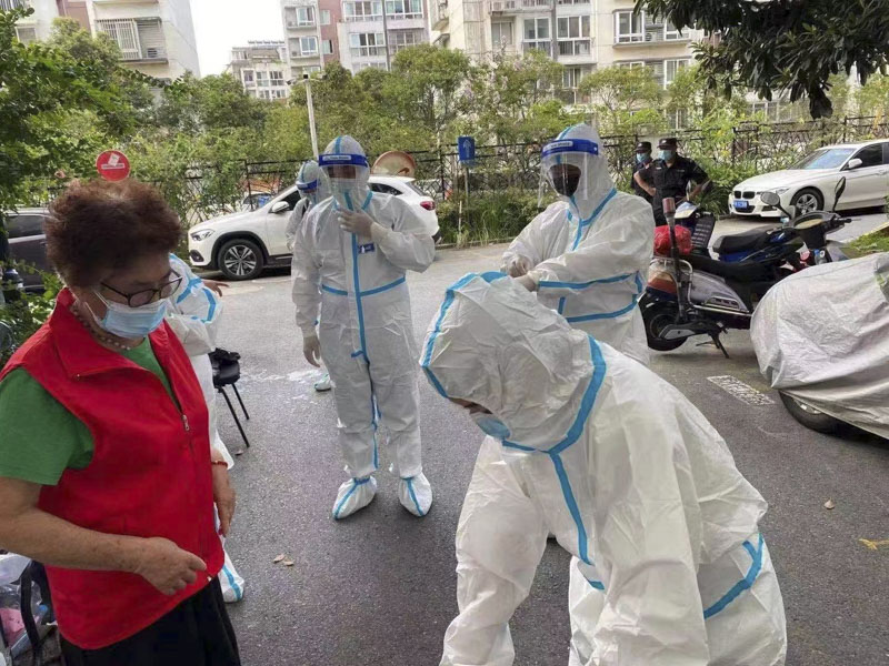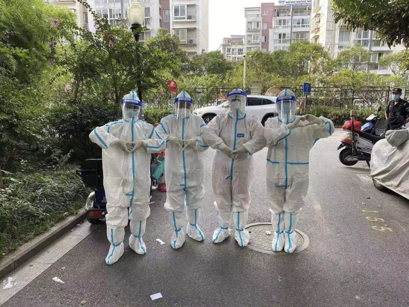 7月28日揚(yáng)州發(fā)現(xiàn)疫情,30日全面封城,宏盛建業(yè)集團(tuán)江蘇分公司經(jīng)理李春光,第一時間主動申請加入到志愿者行列中,他也是這群逆行者中的一位。據(jù)了解,他每日的工作從早上6點(diǎn)開始一直到晚上12點(diǎn)結(jié)束,連續(xù)工作18個小時,每天要給上千人做核酸檢測,忙完到家都已經(jīng)是凌晨。炎炎夏日,高溫酷暑,防護(hù)服下面早已是汗流浹背。他一直在默默做著志愿服務(wù)工作,當(dāng)公司了解到這一情況后,他反而很不好意思,認(rèn)為自己只是盡了一點(diǎn)綿薄之力,做了一件微不足道的小事。