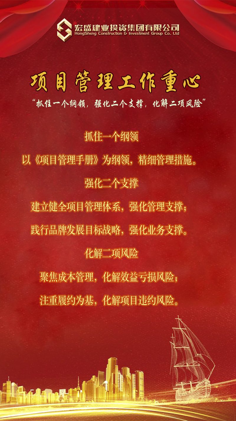 會(huì)上,集團(tuán)董事長(zhǎng)周金虎指出,項(xiàng)目是我們建筑企業(yè)的立命之本,抓好項(xiàng)目管理是我們企業(yè)生存的根基。他要求,項(xiàng)目管理必須要堅(jiān)持“高起點(diǎn)、高標(biāo)準(zhǔn)、高品質(zhì)”,堅(jiān)持“以質(zhì)量求信譽(yù),以標(biāo)化促形象,以管理提效益”,努力做到“項(xiàng)目必優(yōu)、建一個(gè)項(xiàng)目、立一道標(biāo)桿、樹(shù)一方品牌”。從VIS形象、工程質(zhì)量、安全文明施工、到客戶(hù)服務(wù)、誠(chéng)信履約全過(guò)程把控,把每一個(gè)在建項(xiàng)目做成宏盛對(duì)外的窗口和名片,向社會(huì)展示宏盛優(yōu)質(zhì)產(chǎn)品,為市場(chǎng)經(jīng)營(yíng)提供優(yōu)質(zhì)業(yè)績(jī)支撐。